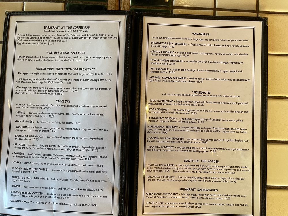 Coffee Pub Menu (2025 Update)
